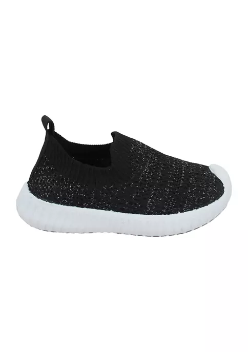 Allover knit slip-on toddler style. Easy to put on and keep on the foot for your busy toddler.