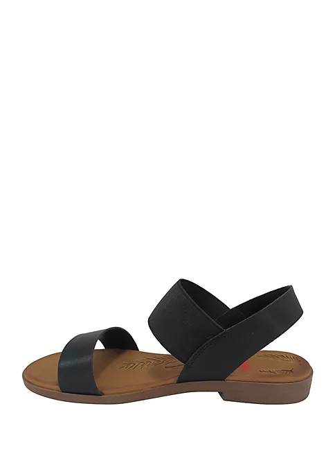 These double strap sandals by Jellypop are lightly cushioned for all-day wear and feature smooth and elastic straps for simple, fashionable style.