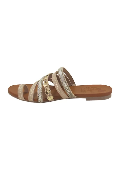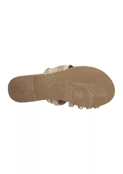 JELLYPOP’s Marina Embellished Toe-Thong Sandals are flashy yet understated. These flat, slip-on sandals are accentuated with straps, tokens, and sequins—so they’re classic slip-on styles with so much flare to count.