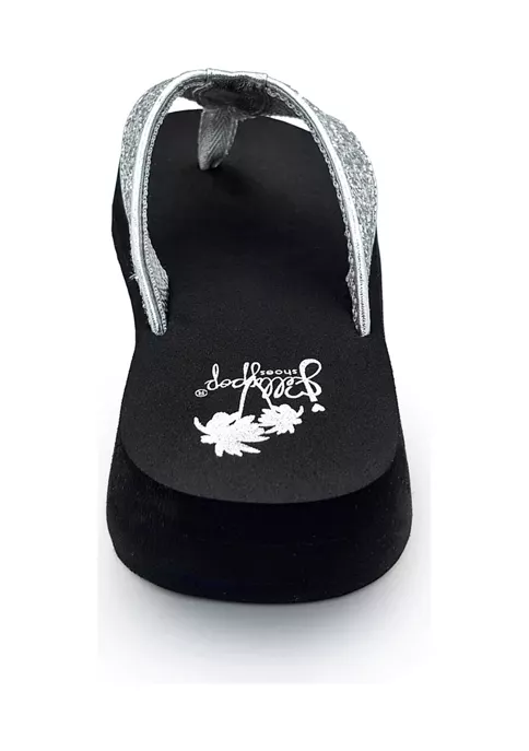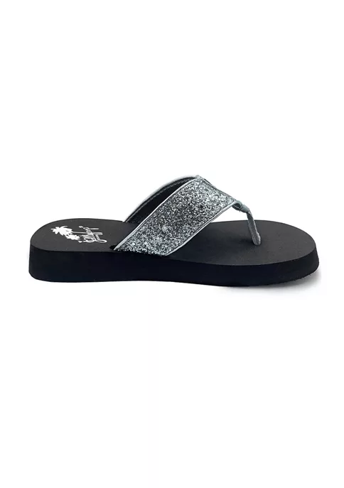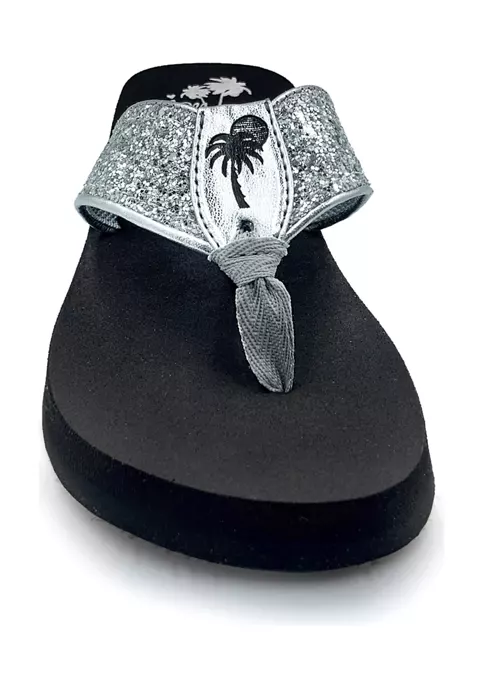 Fun and surprisingly smooth, these EVA thong flip flop sandals from Jellypop dazzle and delight with their glitter uppers.
