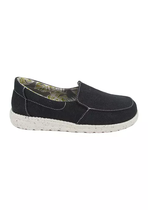 These casual slip-on canvas upper shoes feature a comfortable insole for all-day wear. A new take on sneakers.
