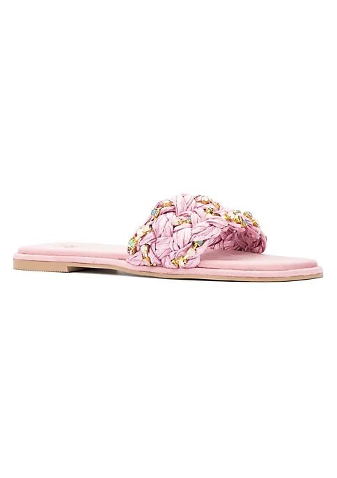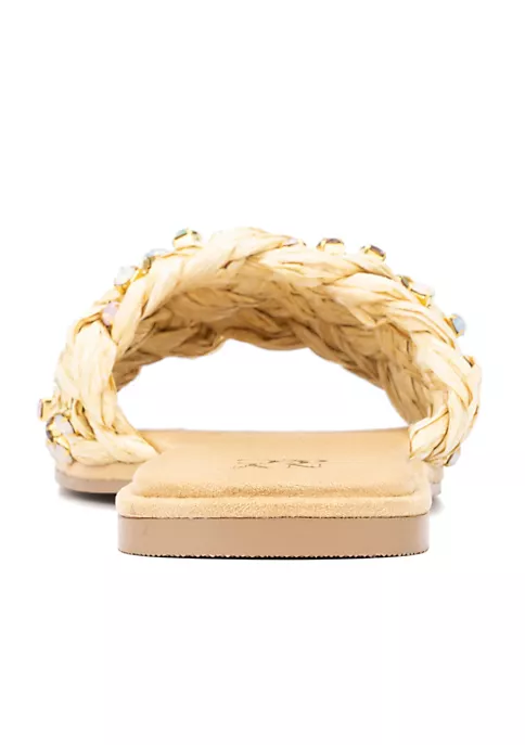 These sandals are ideal for the warm weather season and are both fashionable and comfortable. This pair is highlighted by jute material, pops of glam hues, and intricate threadwork. Pair them up with your favorite dress, shorts or pants. Upper: 100% Polyester, Outsole: 50% Thermoplastic Rubber, 50% Polyester, Lining: 50% Thermoplastic Rubber, 50% Polyester Heel Height: 0.5″