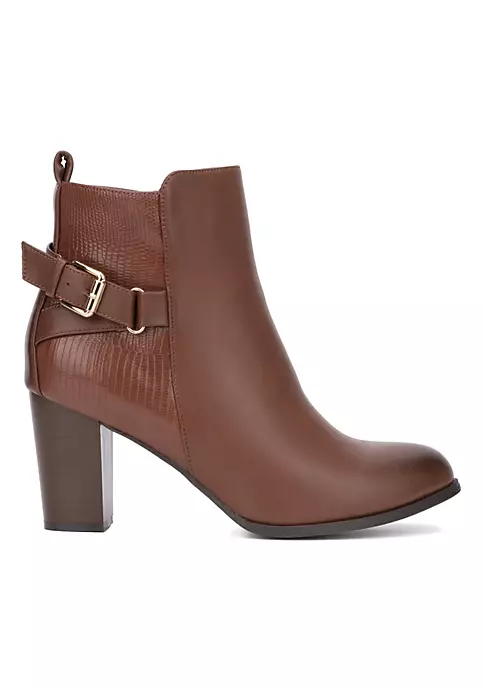 The Andra bootie is classic enough for any outfit. This style features a decorative buckle accent, side zip closure and a sacked heel. Upper: 100% Faux Leather Outsole: 100% Thermoplastic Rubber Lining: 100% Fabric Heel height: 3.15″ Shaft height: 6.1″ Shaft circumference: 10.63″