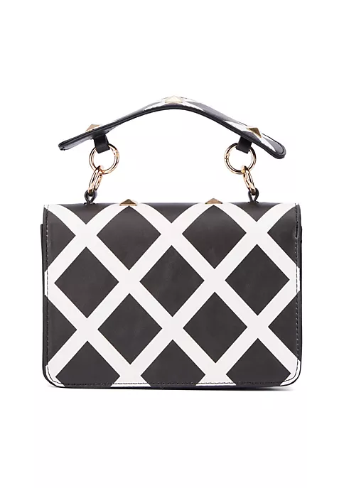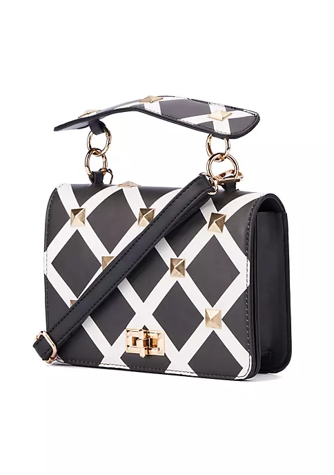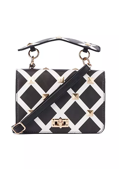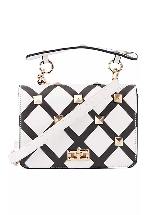 Give your look a laid back yet luxe finish with this edgy crossbody bag. Carefully embellished with stud details and a turn lock closure.