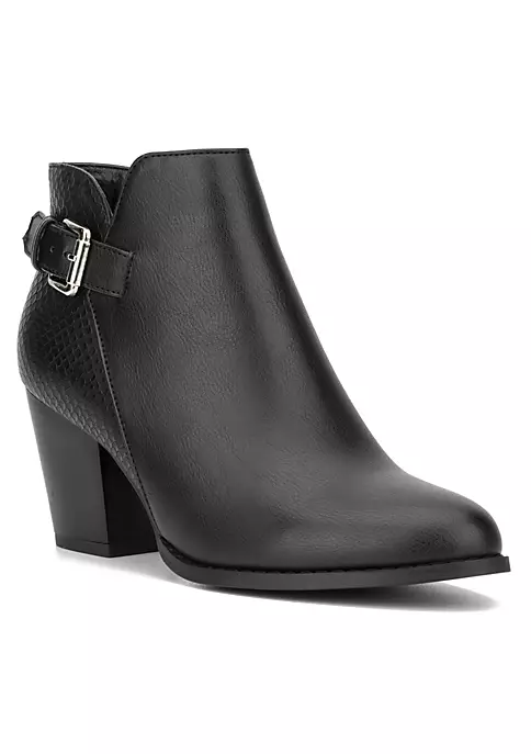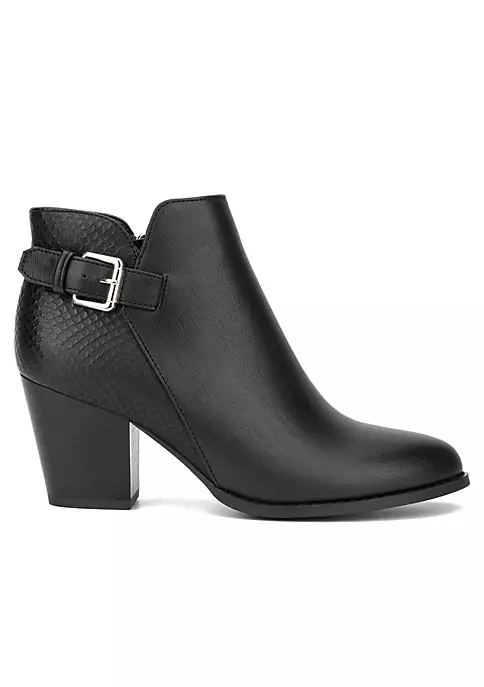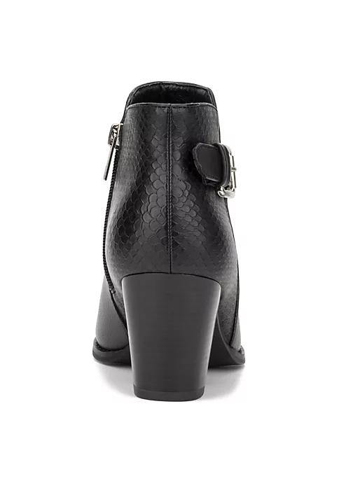 The Jamie bootie features a dual texture, almond toe, stacked heel, buckle ankle strap and side zip closure. Upper: 100% Faux Leather Outsole: 100% Thermoplastic Rubber Lining: 100% Fabric Heel height: 2.76″ Shaft height: 6.1″ Shaft circumference: 10.63″