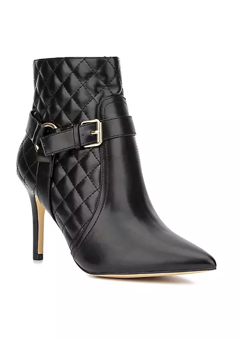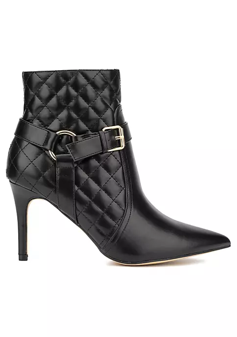 The Magdalena pointed toe boot is exquisitely designed with a stiletto heel, diamond pattern style on back, strap and buckle accent. Elegance all around. Upper: 100% Faux Leather Outsole: 100% Rubber Lining: 90% Faux Suede, 10% Faux Leather Heel height: 3.23″ Shaft height: 4.02″ Shaft circumference: 9.45″