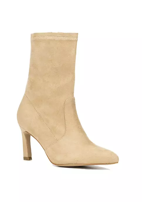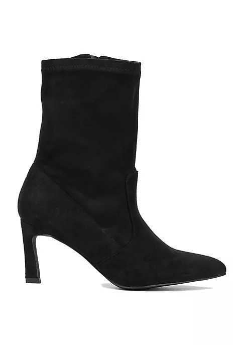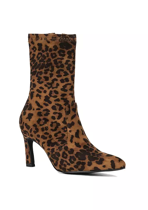 The Xandra bootie features a timeless design. Faux plain or animal print suede upper, pointed toe, stiletto heel and side zip fastening. Upper: 100% Faux Suede Outsole: 100% Rubber Lining: 80% Faux Suede, 20% Faux Leather Heel height: 3″ Shaft height: 7″ Shaft circumference: 10″