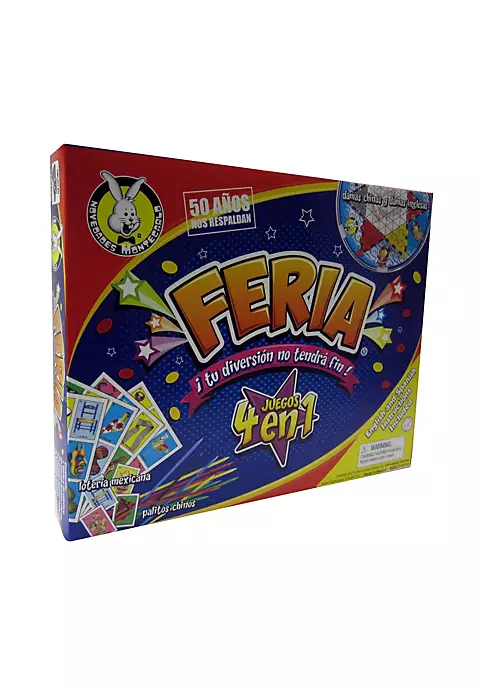 Feria 4 Games in 1 contains four top selling games straight from Mexico. Talk about value! All in one box, Feria 4-1 has all you need to play these classic childhood games, including Chinese Checkers (Damas Chinas), Checkers (Damas Inglesas), Bingo (Loteria Mexicana) and Pick Up Sticks (Palitos Chinos). It’s a blast from the past and with so many games to choose from, the fun never stops. Bilingual instructions included for all 4 games.