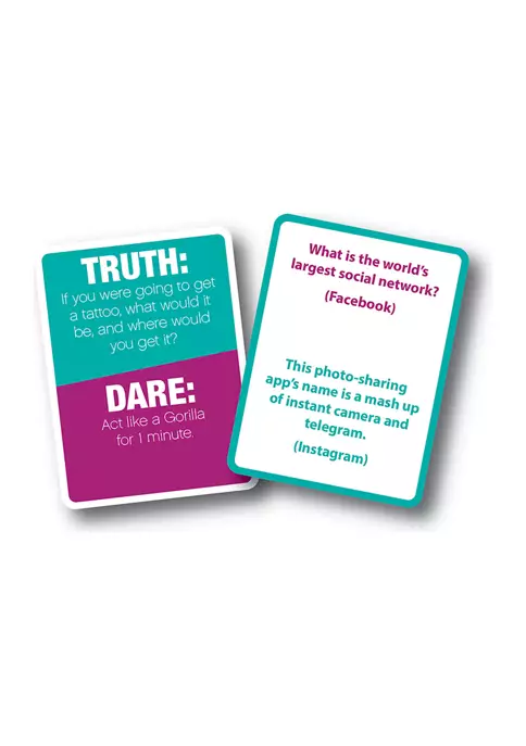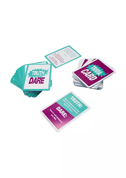 How well do you know your friends? Truth or Dare is the hilarious and revealing game of facts and challenges. Be the first player to get rid of all the Truth or Dare cards in your hand. Answer pop culture trivia questions correctly in order to force your opponent to tell the truth. But watch out! If you answer the question incorrectly, you will be subjected to an outrageous dare. Will you lick another player’s arm, run around the block howling like a coyote, or stand on your head? Play Truth or Dare to find out how far you will go to win!